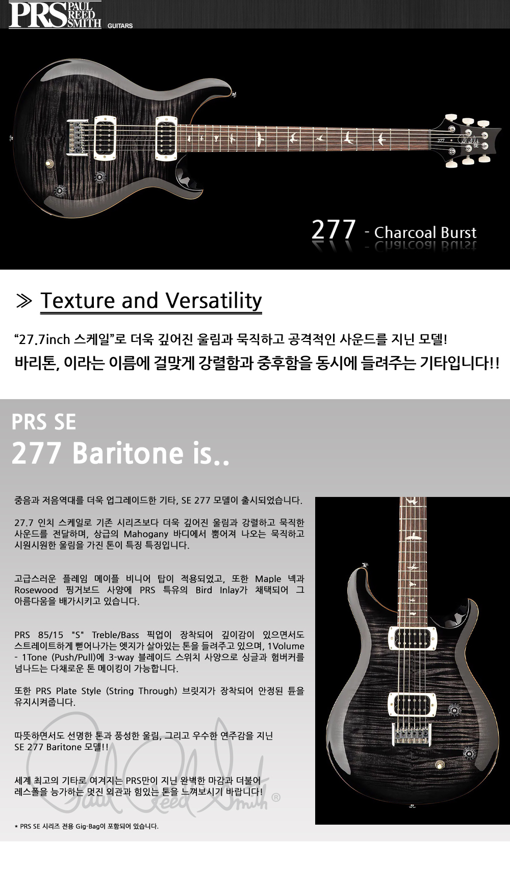 [PRS SE 2026] 277 - Charcoal Burst 바리톤 27.7인치 스케일