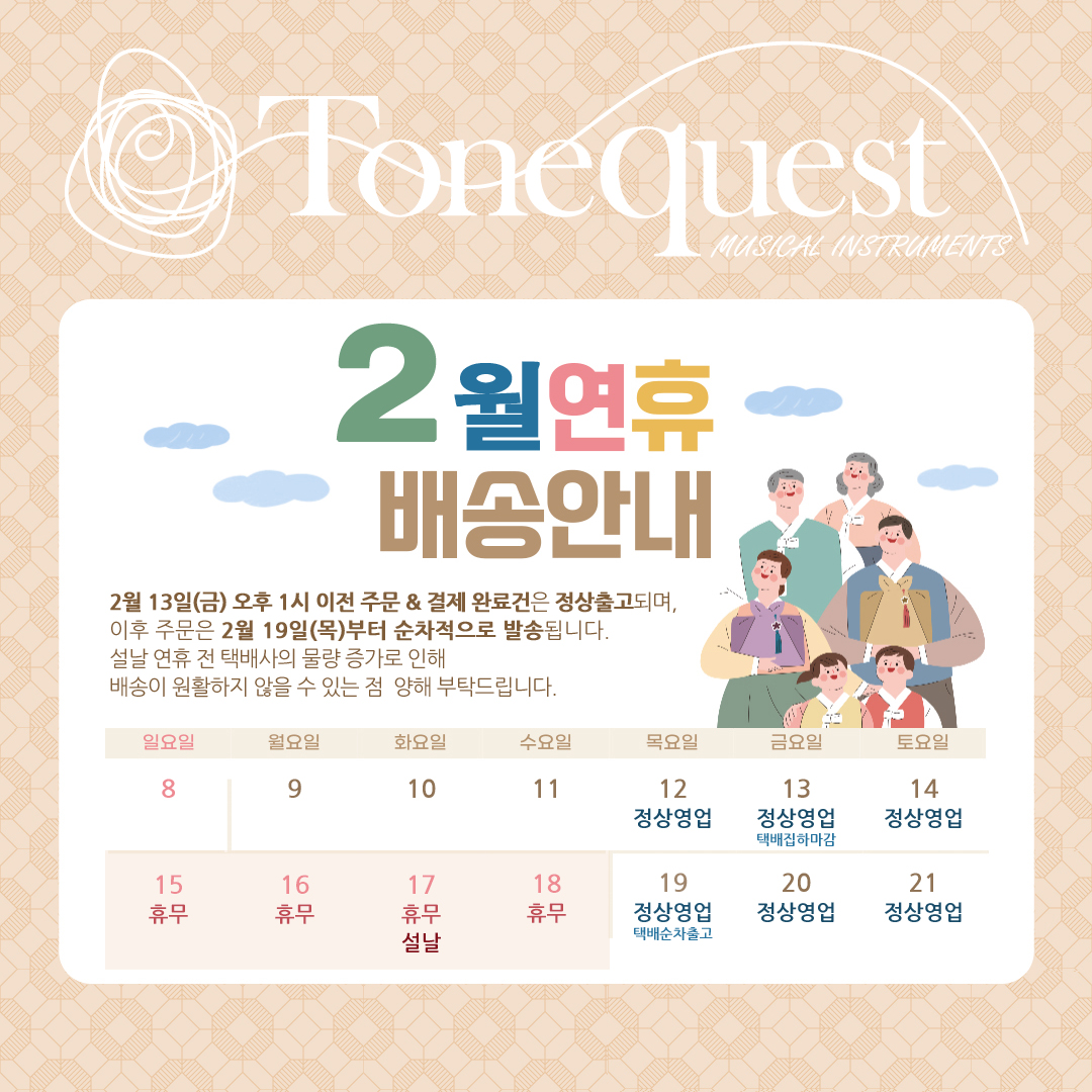 톤퀘스트 2025년 2월 휴무 & 배송일정 안내입니다.