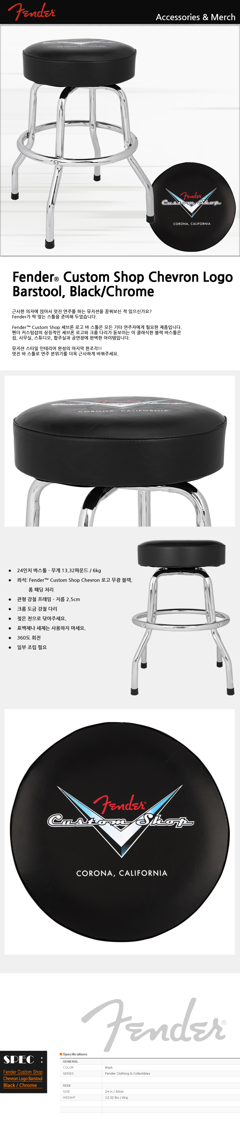 | 품명 / 모델명 | Fender® Custom Shop Chevron Logo Barstool, Black/Chrome |