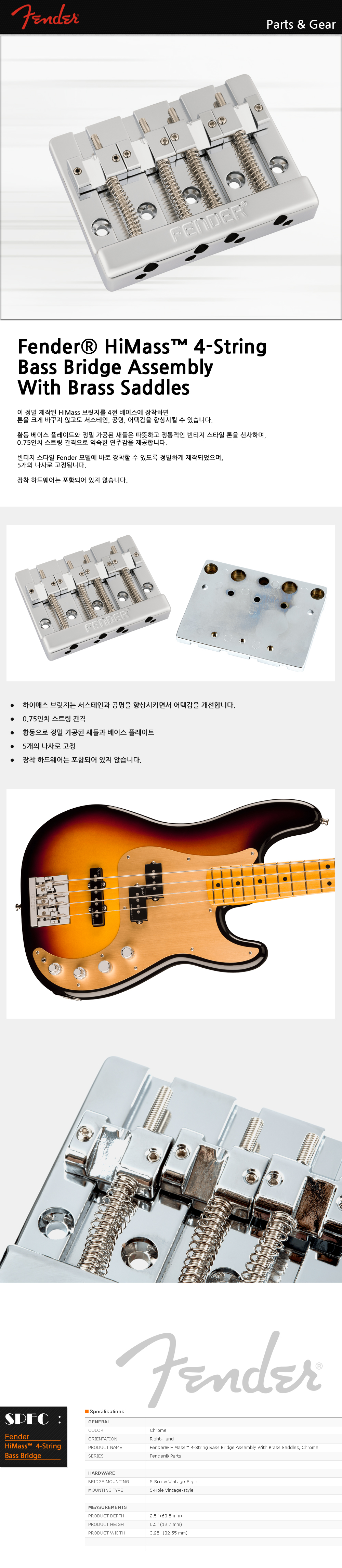 | 품명 / 모델명 | Fender® HiMass™ 4-String Bass Bridge Assembly With Brass Saddles |