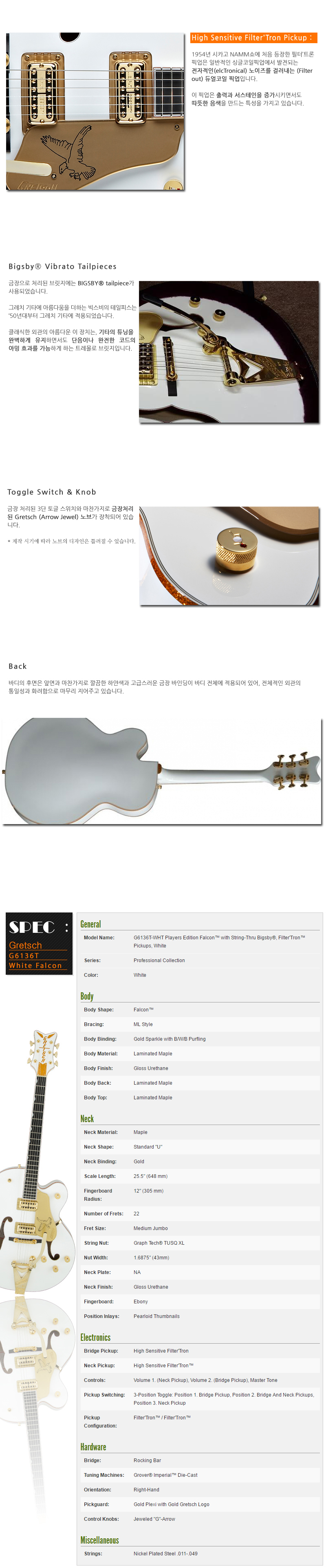 | 품명 / 모델명 | [Gretsch] G6136T White Falcon™ Players Edition | ||