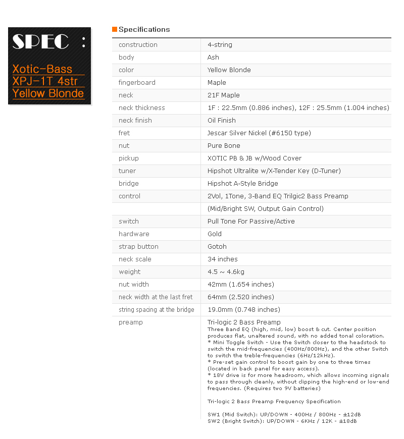 품명 / 모델명 [Xotic] Bass XPJ-1T 4st
