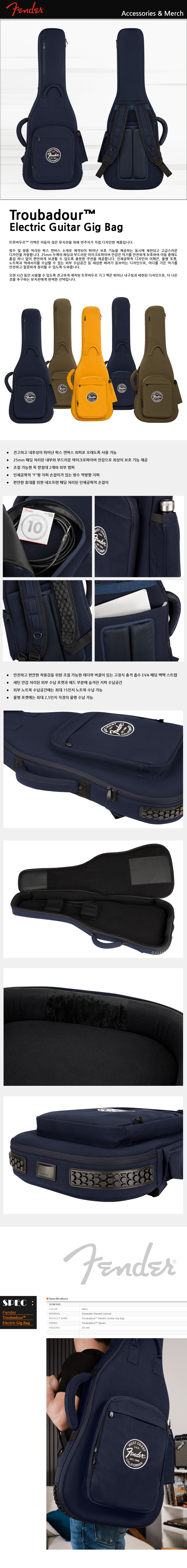 [Fender] Troubadour™ Electric Guitar Gig Bag - Navy 펜더 트루바두르 일렉기타 케이스